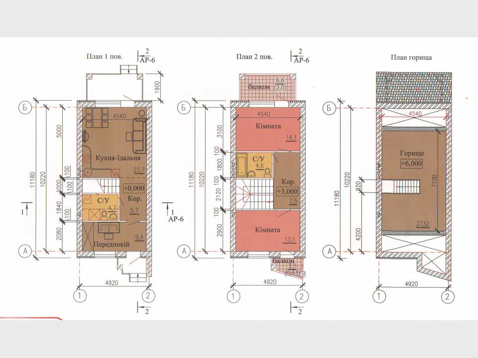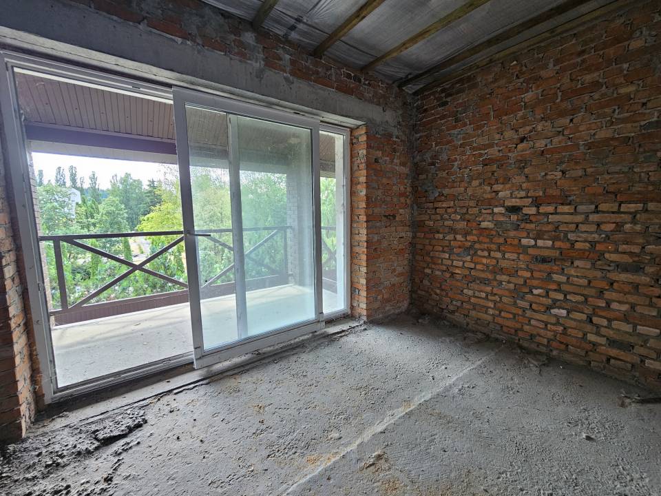 Другий поверх: дві окремі кімнати по 14 кв.м., де кожна має вихід на балкони із гарним краєвидом, санвузол та коридор із виходом на горище додатковою площею 27 кв.м.