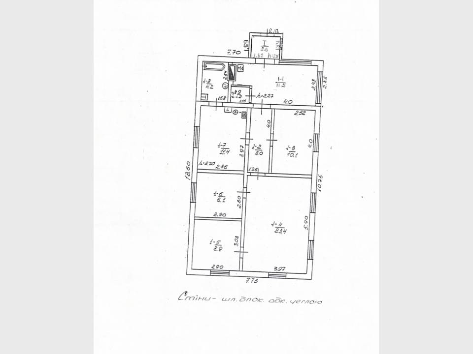 Будинок 1975 року, стіни шлакоблок обкладений цеглою, бутовий фундамент.